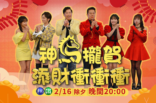 農曆除夕夜,華視推出年度賀歲綜藝盛宴 《神馬攏賀添財衝衝衝》,集結眾多人氣藝人,結合最熱鬧的遊戲對戰、活力十足的啦啦隊舞蹈,以及翻玩經典的爆笑賀歲短劇,陪伴觀眾從團圓飯一路歡笑守歲,迎接充滿福氣與好運的新一年。
